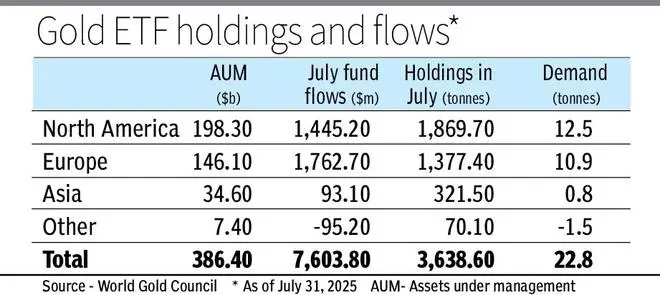 Gold ETFs see $3.2 billion inflows globally in July, WGC data shows